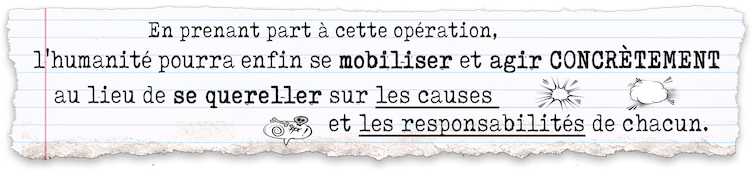 En prenant part à cette opération, l’humanité pourra enfin se mobiliser et agir concrètement au lieu de se quereller sur les causes et les responsabilités de chacun.